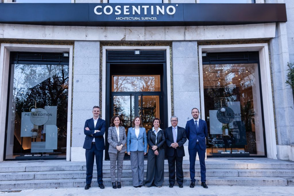 Un grupo de directivos de empresas del FMRE encabezado por su presidenta, Sofía Osborne, participó el 31 de marzo en un desayuno de trabajo con la secretaria de Estado de Comercio, Amparo López Senovilla, organizado en el Cosentino City de Madrid.