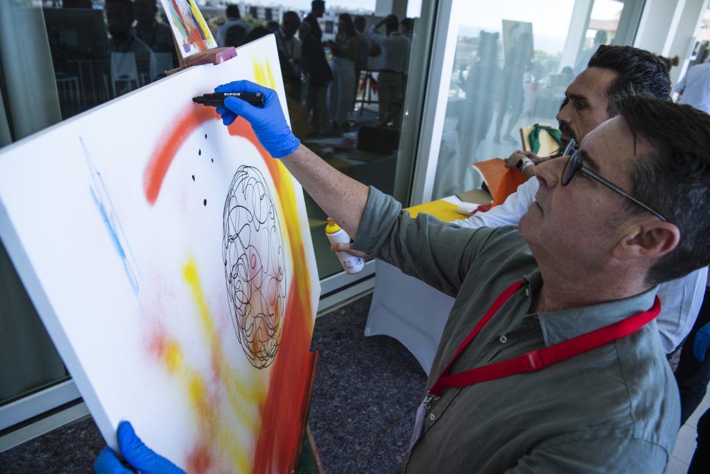 Después de la mesa redonda, los asistentes participaron en una ‘batalla de lienzos’, una actividad de networking en la que, divididos por equipos, se desafiaron a replicar en un tiempo determinado una obra del reconocido artista urbano Darko, quien estuvo presente en la actividad para orientar a los grupos.